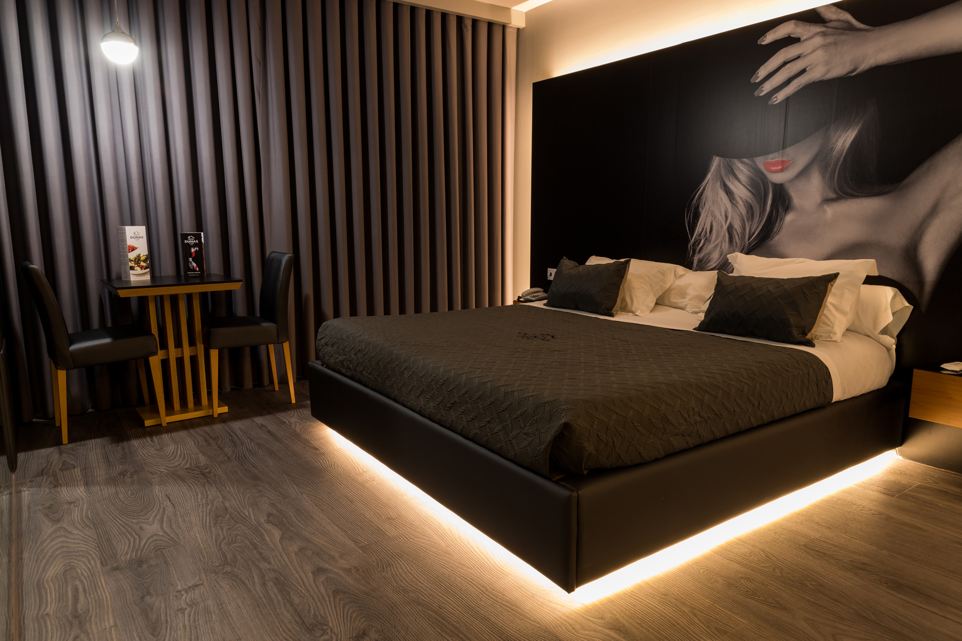Passe da fantasia à ação, uma vez que esta suite conta com cama king size (2x2m) e uma banheira de hidromassagem. Para além disso, tem como opções o sofá erótico e o baloiço.