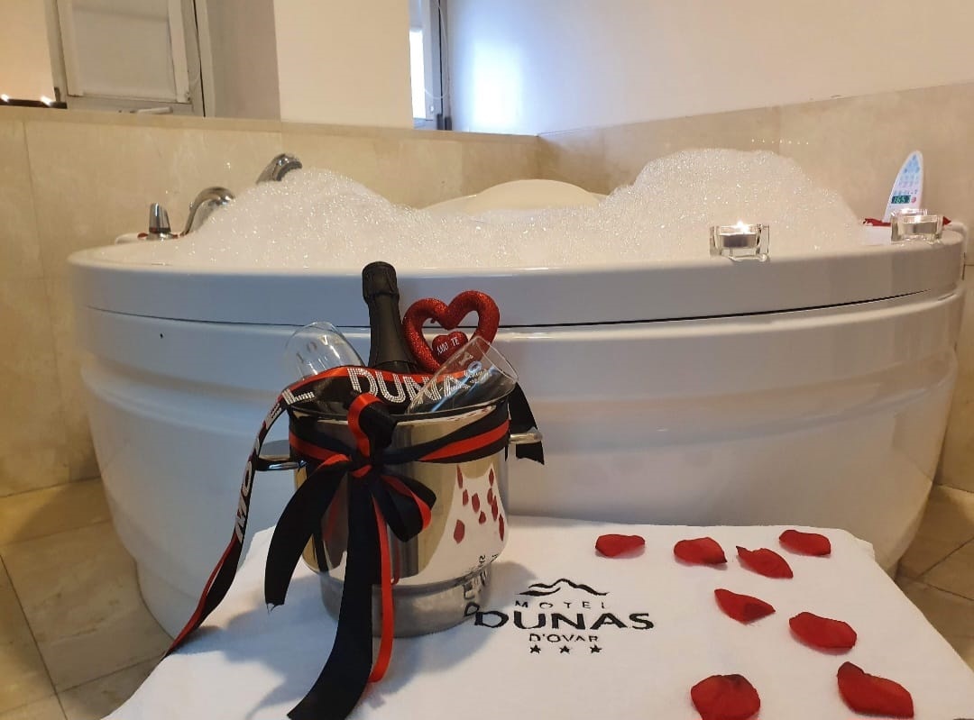 No Motel Dunas, a personalização faz toda a diferença. Dispomos de vários packs de decoração temática, pensados para transformar a suite num cenário de celebração romântica.