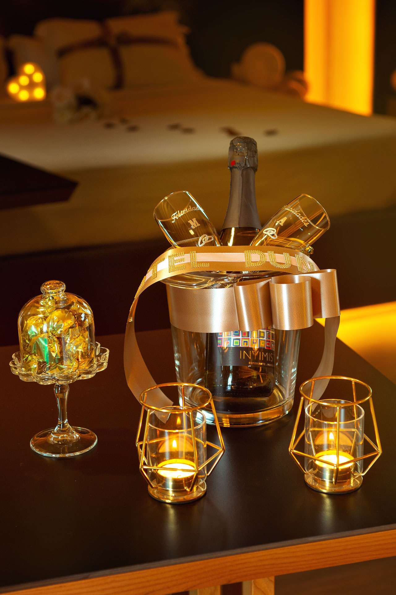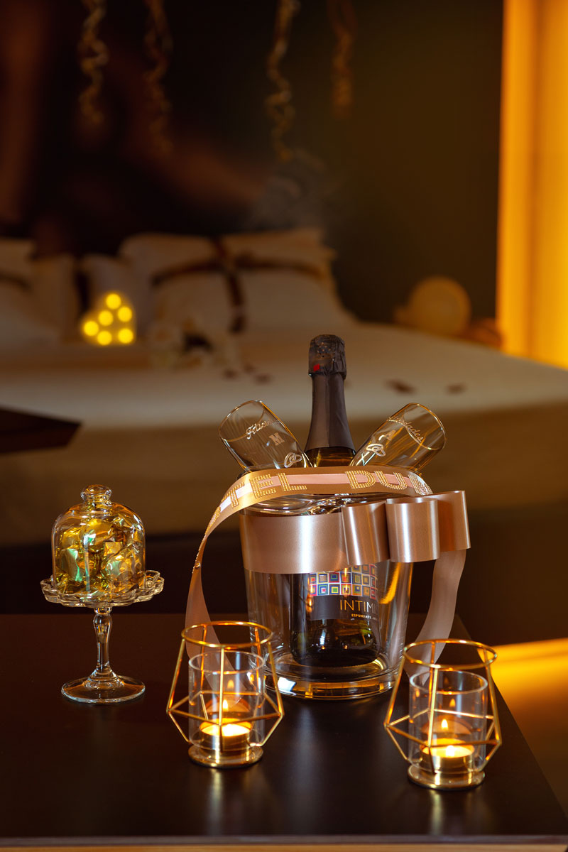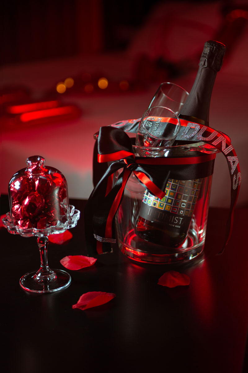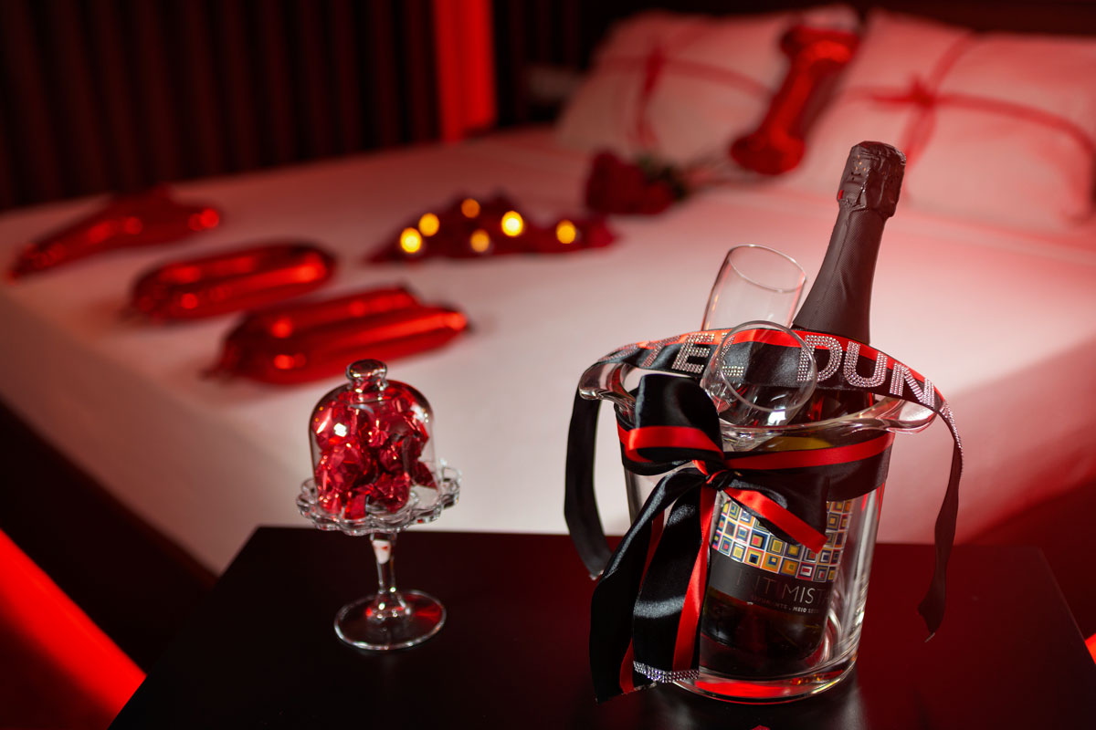 Imagine abrir a porta da suite e encontrar o espaço decorado com balões, pétalas de rosa, champanhe fresco e uma atmosfera envolvente. O jacuzzi espera por vocês, as velas iluminam o ambiente e tudo convida a celebrar o amor.